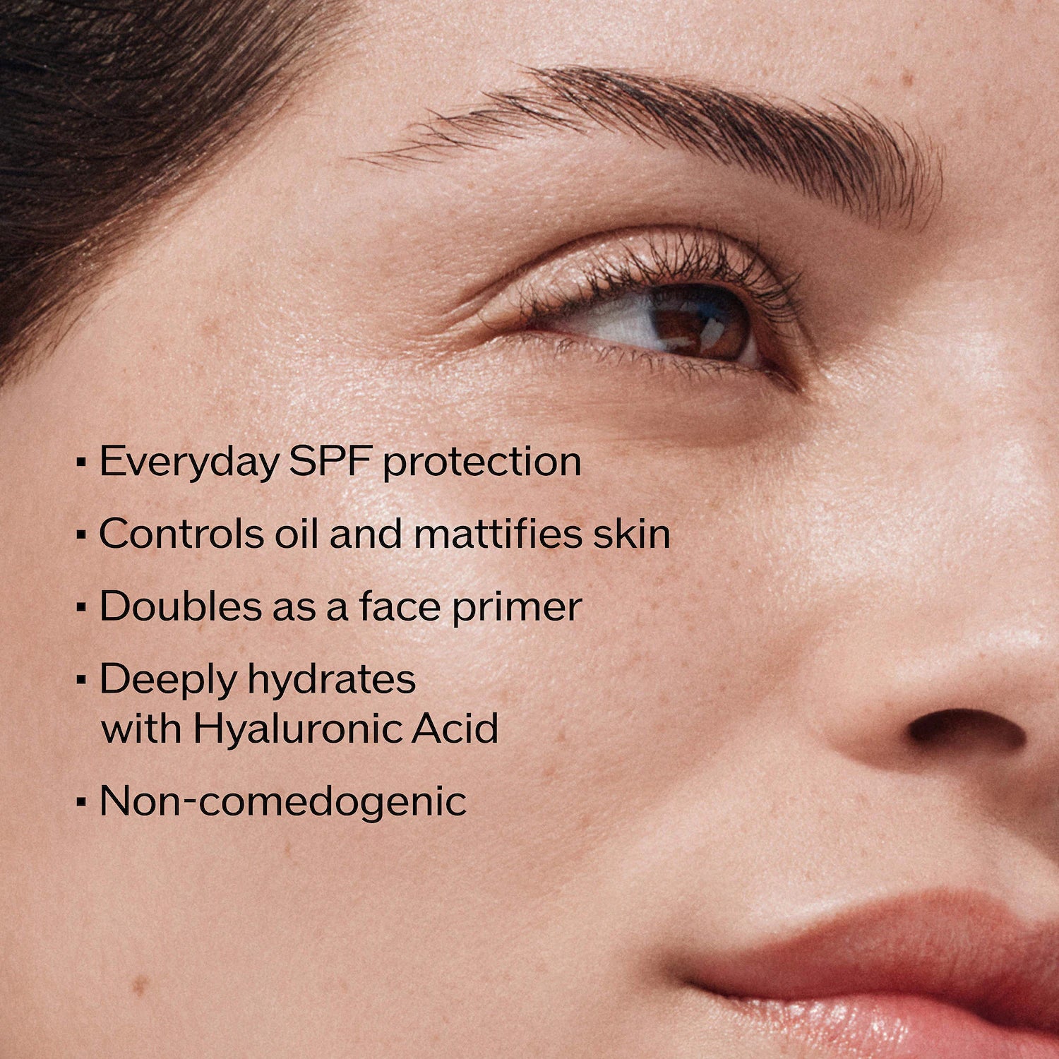 Qué es: un protector solar facial diario, liviano, sin aceite, con ácido hialurónico que protege contra los dañinos rayos UVA/UVB y también funciona como prebase facial.
